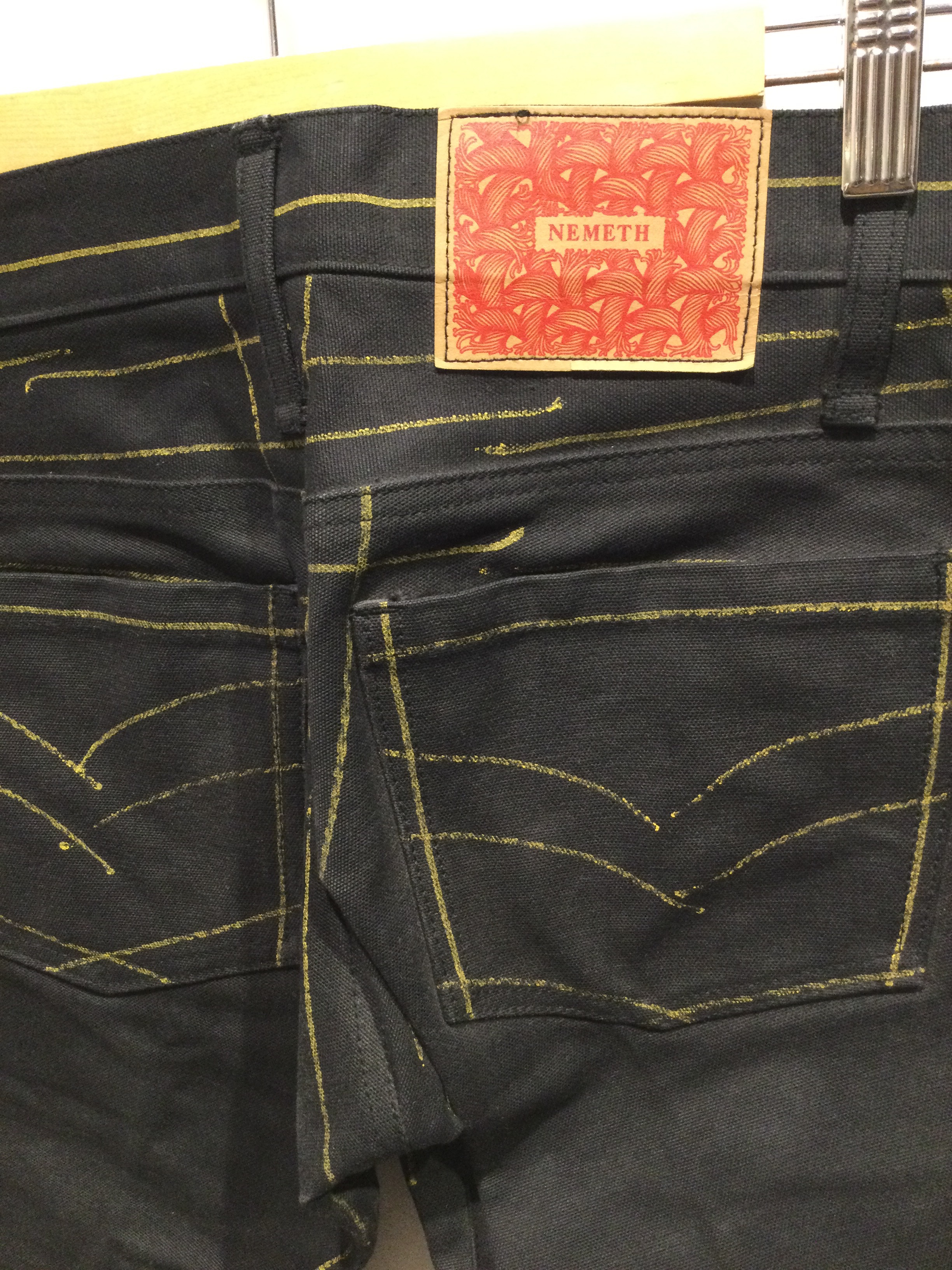 Christopher Nemeth black hand-drawing-lined pants red patch 90’s
